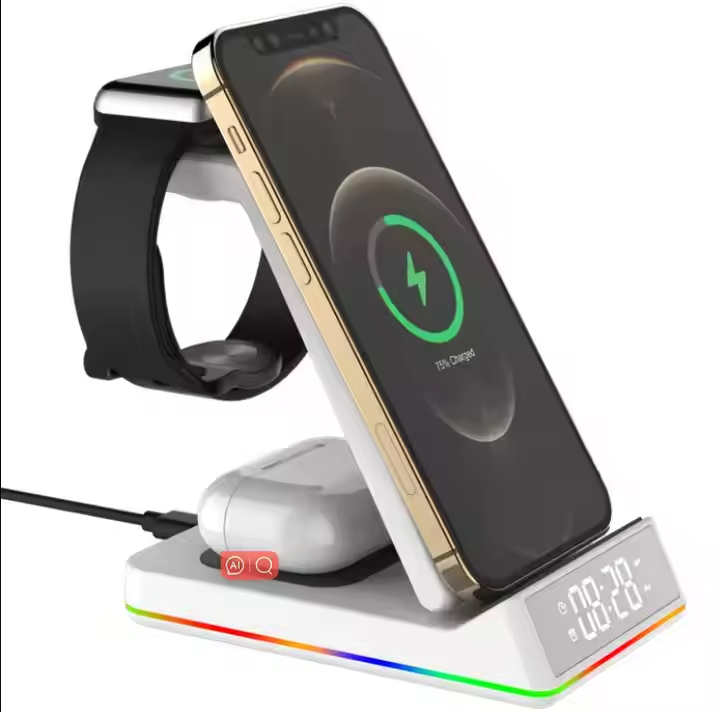 5 in 1 Portable Magnetic Wireless Charger Multi-function Fast phone chargers With Electronic Clock for Phones Smart Watches