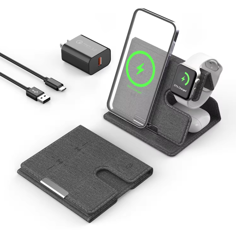 High Quality 3 in 1 Foldable Wireless Charger Smart Magnetic Charging Station for Earphone/phone/watch